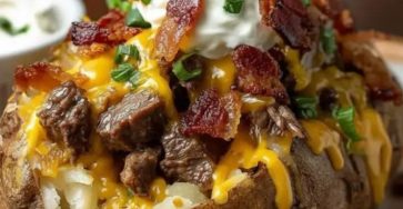 Ingredients For the Potato For the Steak Bites Toppings 🔥 Directions 1. Bake the Potato (Air Fryer Option: 400°F for…