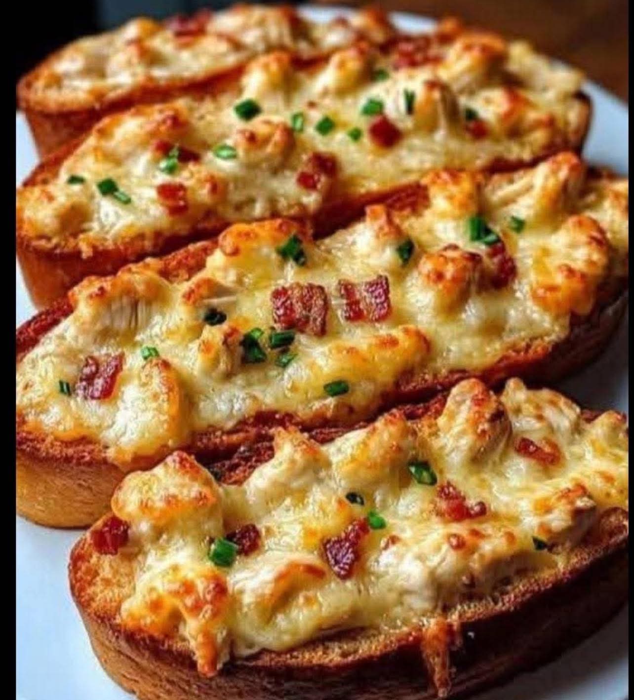 Spread the chicken mixture evenly over each half of the bread, then sprinkle shredded mozzarella on top.