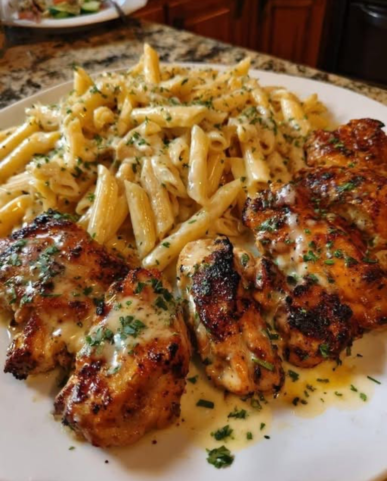 Cheesy Penne and Cajun Chicken in Garlic Parmesan Cream