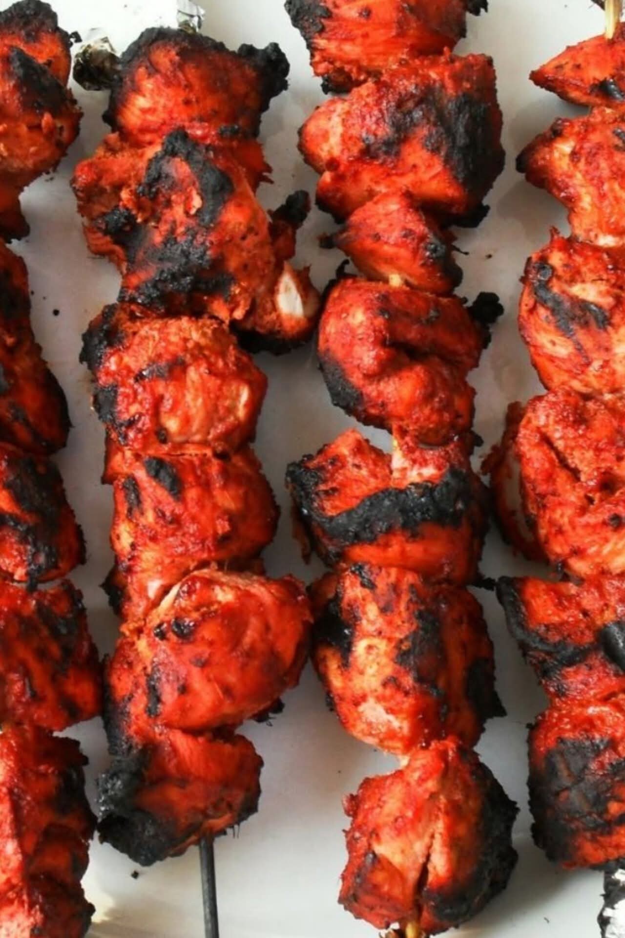 Oven method: Preheat the oven to 200°C. Line a tray with foil and place chicken pieces on skewers or directly on the rack. Bake for 20–25 minutes or until charred slightly. Flip halfway through.