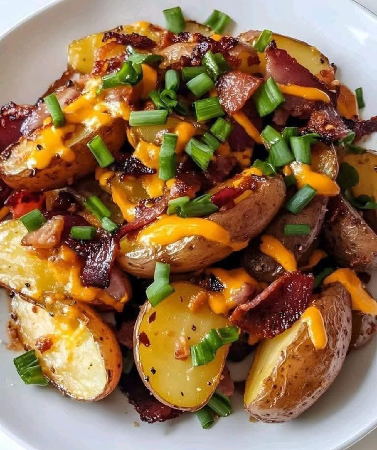 Add Cheese and Bacon: Reduce heat to low, sprinkle cheddar cheese and cooked bacon over the potatoes. Cover and cook for a few more minutes until the cheese is melted.