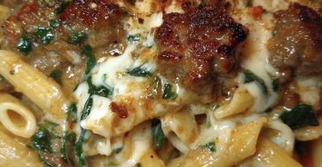 Add cooked penne pasta and fresh spinach to the skillet. Toss until the pasta is fully coated and spinach is wilted. - Season & Serve