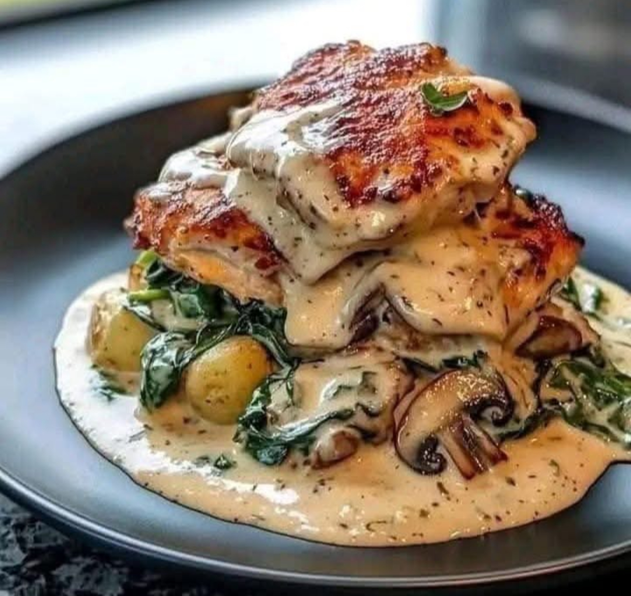 Creamy Smothered Chicken with Spinach, Potatoes, and Mushrooms