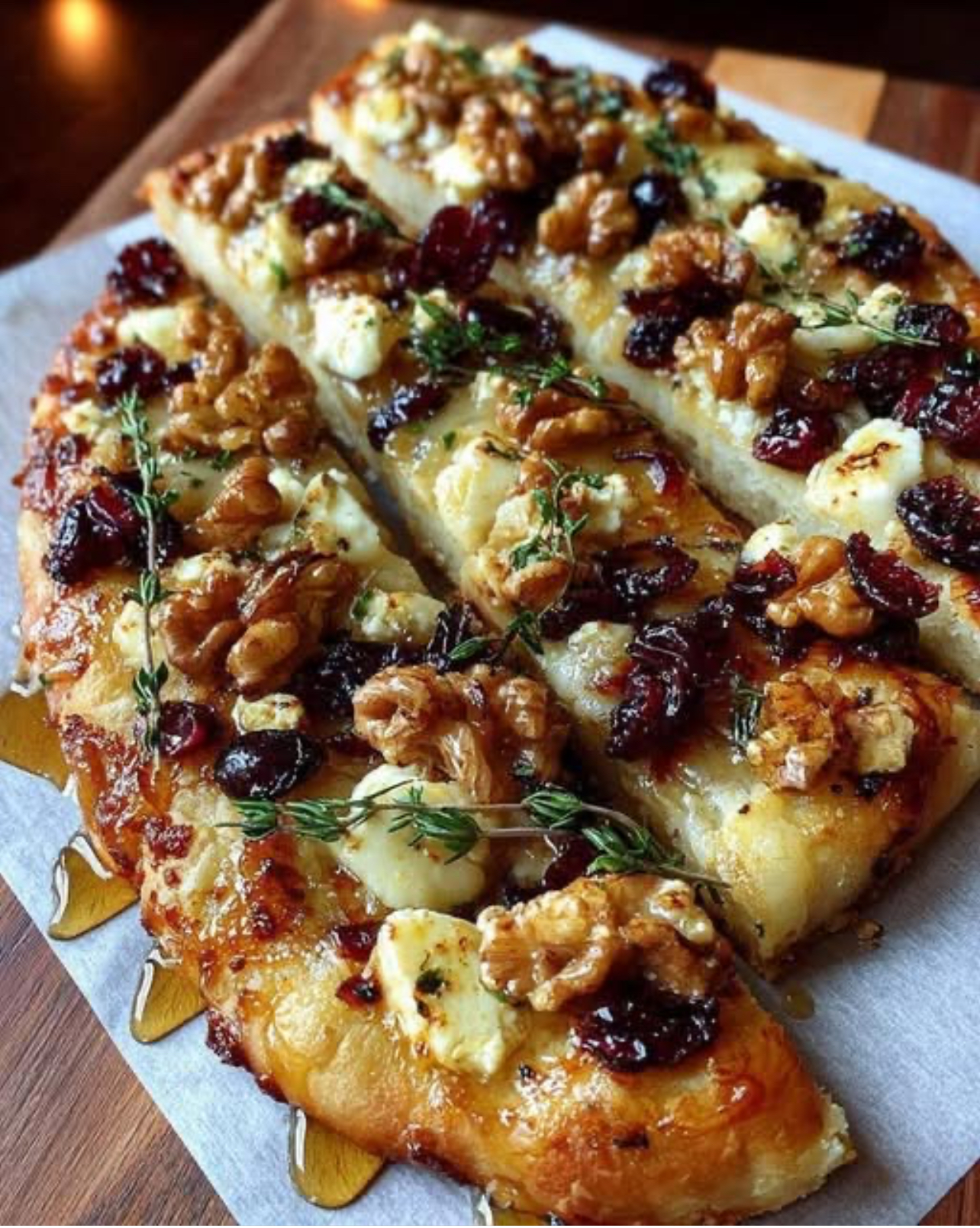 Sprinkle cranberries and toasted walnuts over the surface.