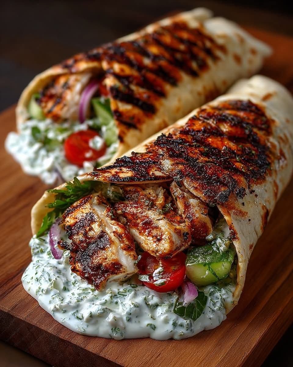 Greek Grilled Chicken Wraps with Garlic Tzatziki Sauce