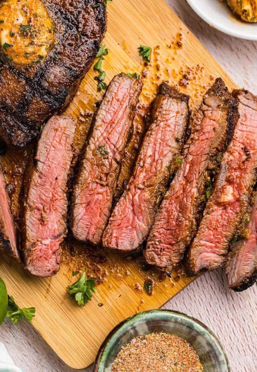 Add the steaks and cook for about 4 to 6 minutes on each side for medium rare 125 degrees *see notes