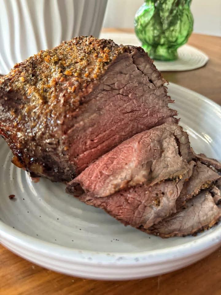 This beautiful roast proves you can serve something impressive without spending a fortune. Cuts like top round, bottom round, or sirloin tip often cost under $15—especially if you grab one from the sale section and tuck it into the freezer until the holidays. When you treat these cuts right, they become incredibly flavorful and tender, especially sliced thin like this.