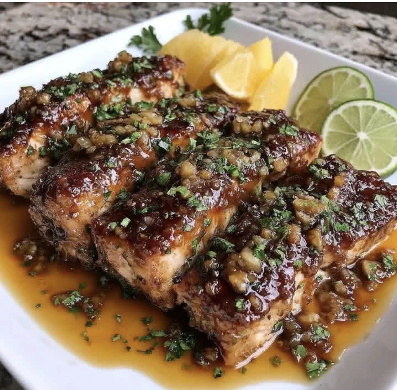 Pour the honey ginger glaze over the fillets.