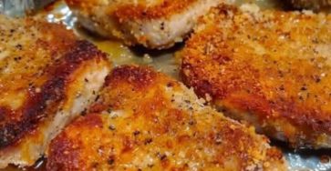 4 boneless pork chops, 1/2 inch thick1 Tbsp olive oil1 cup Parmesan cheese, grated1 cup Italian bread crumbs1 tsp black…