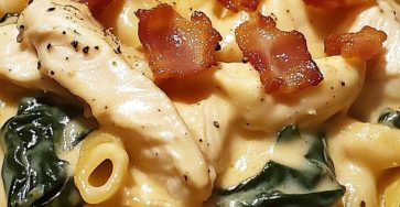 One-Pot Creamy Chicken, Spinach, and Bacon Pasta