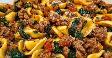 Ingredients: 1 lb ground beef 1 tbsp olive oil 4 cloves garlic, minced 1 (20 oz) package refrigerated cheese tortellini…
