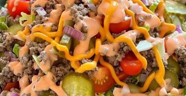 Ingredients: For the Salad: 1 lb (450 g) ground beef 1 tsp salt ½ tsp black pepper 1 tsp garlic…