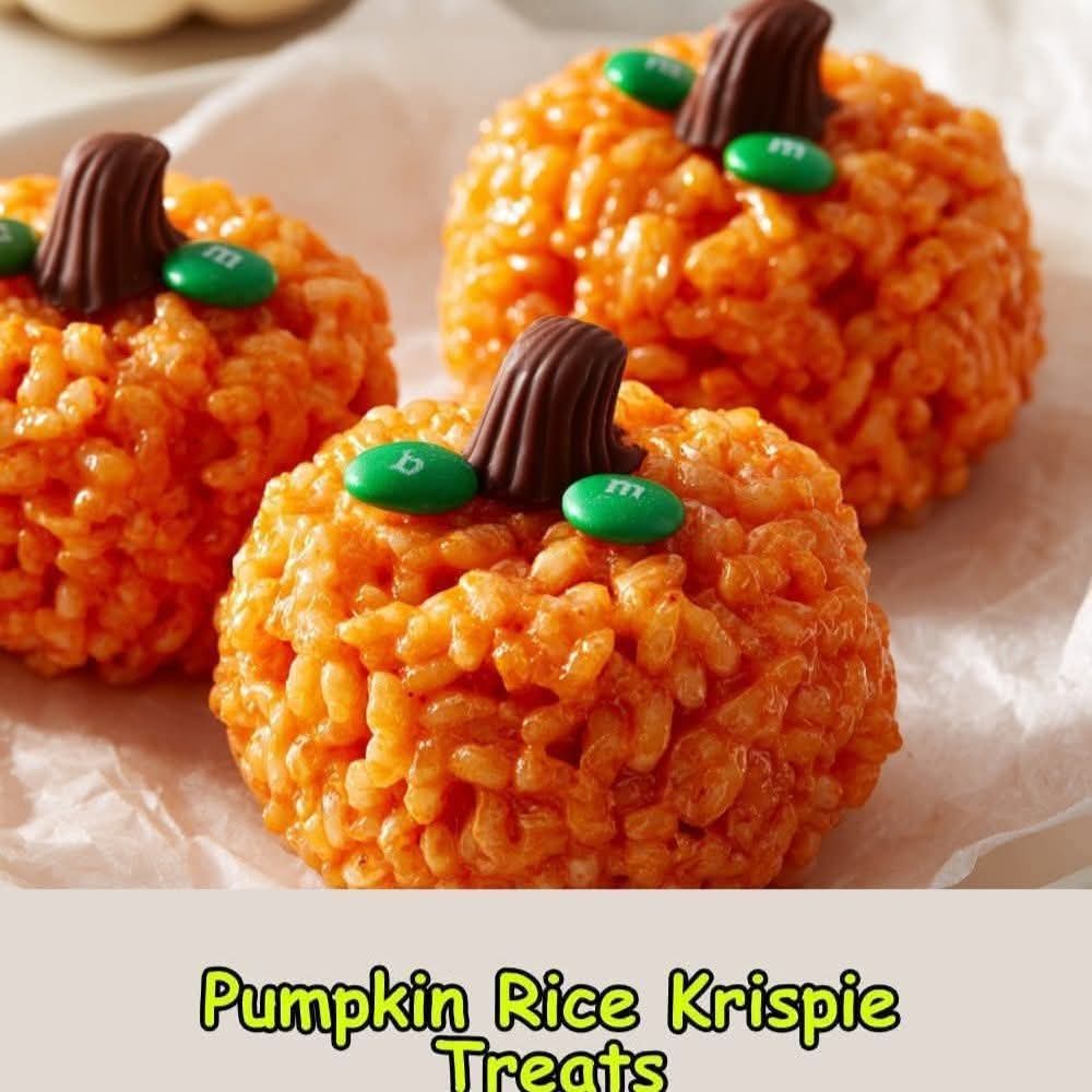 8. Attach one green M&M candy near the Tootsie Roll on each treat to act as the pumpkin leaf.