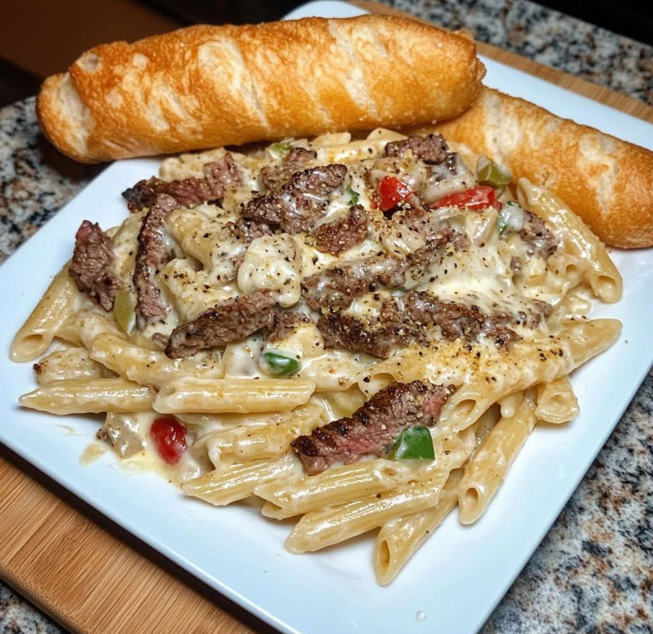 - Add the cooked penne and toss to coat evenly in the sauce.