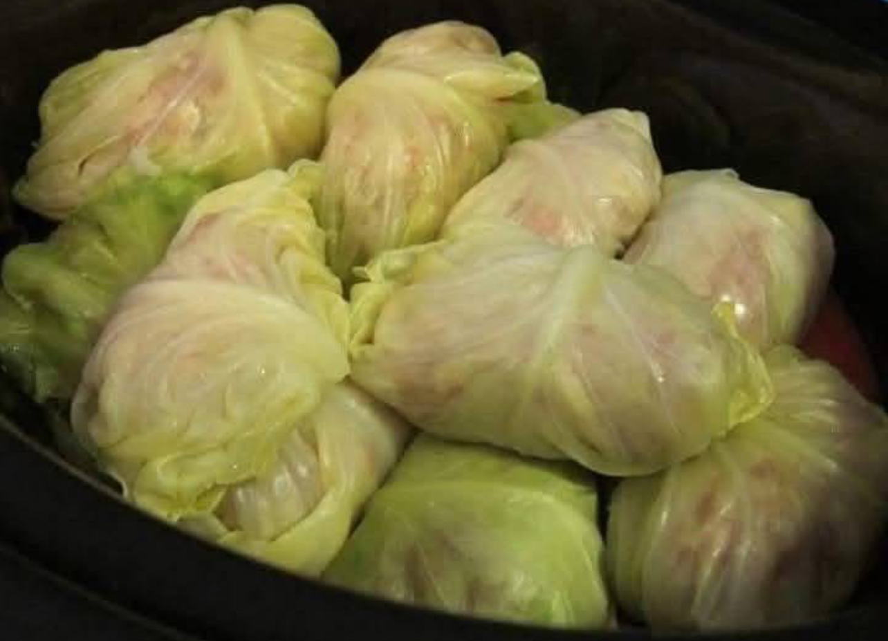 Cut out the thick vein from the bottom of each leaf, making a V-shaped cut. Place about 1/4 cup meat mixture on a cabbage leaf; overlap cut ends of leaf. Fold in sides. Beginning from the cut end, roll up. Repeat.