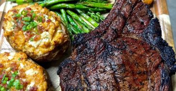 Finish in oven at 200°C / 400°F for 10–15 min (medium-rare).