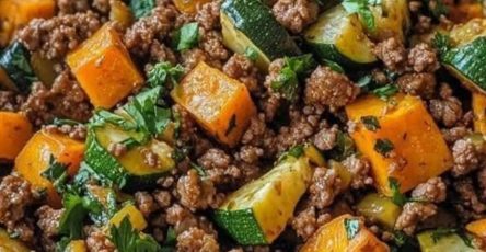 Add the ground beef to the skillet and cook until browned, breaking it into crumbles. Drain any excess grease.